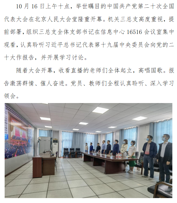 机关三总支集中收看党的二十大开幕式